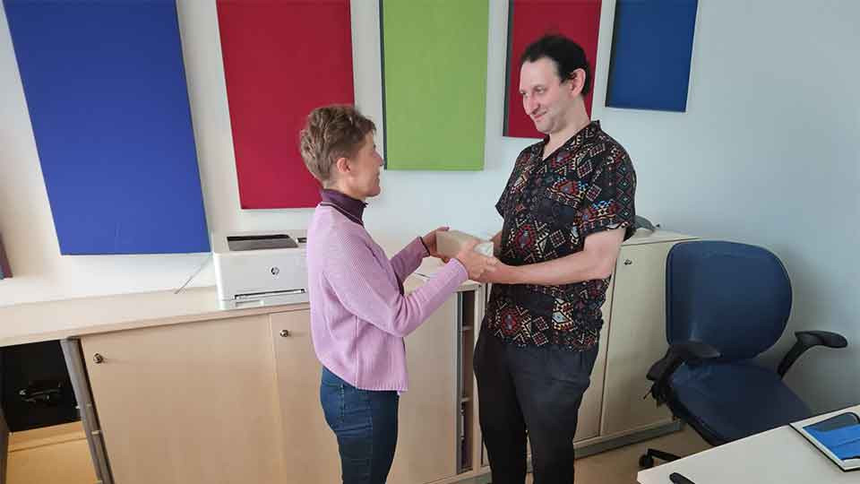 Zum Geburtstag gab es von der Geschäftsführung auch ein kleines Geschenk für Christoph. Denn egal ob Projekt oder persönlicher Anlass – bei uns steht der Mensch im Mittelpunkt.