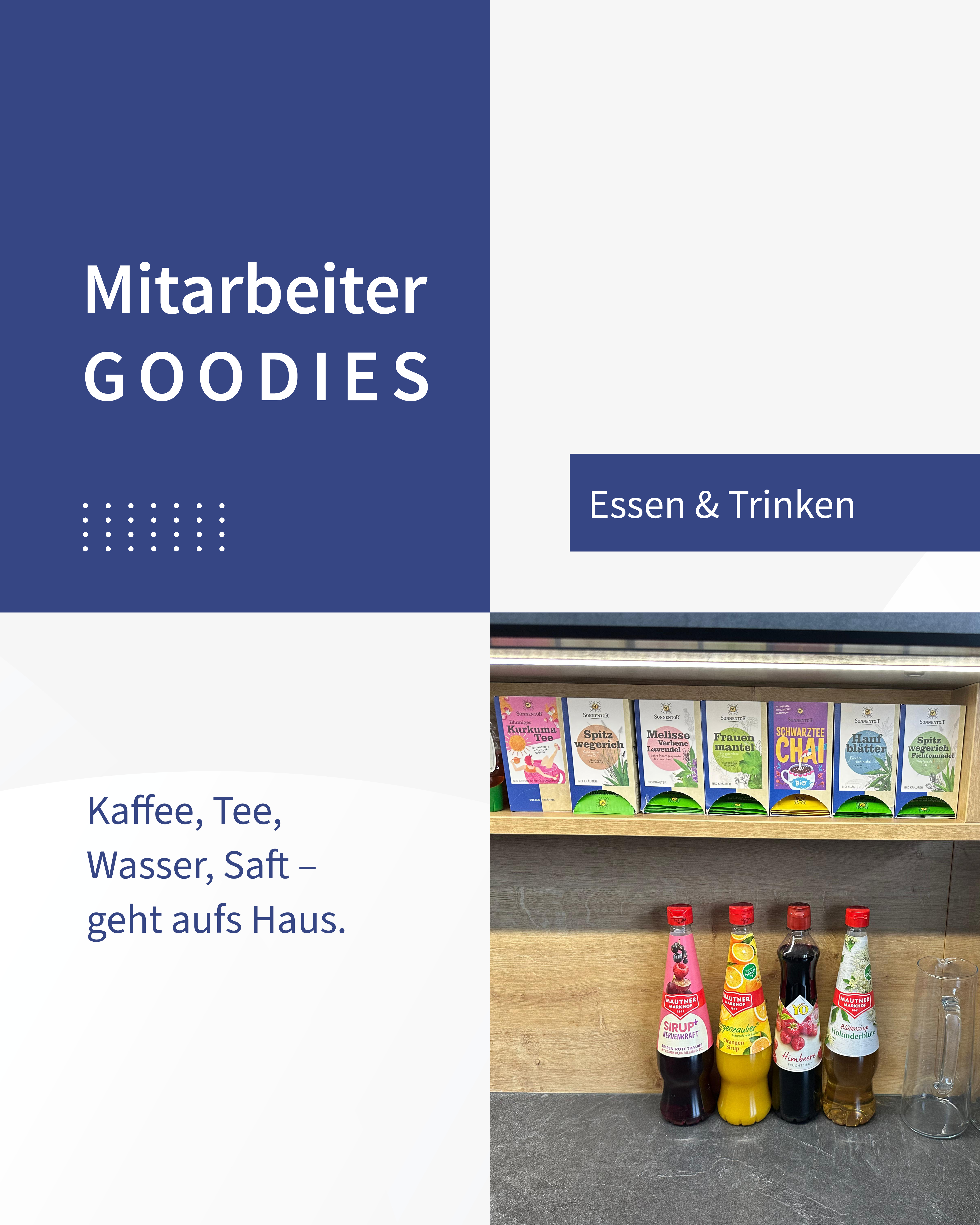 Wer tagtäglich mitdenkt, verdient auch kleine Extras, die den Arbeitsalltag angenehmer machen. Und deshalb gilt bei uns: Getränke? Gehen aufs Haus.